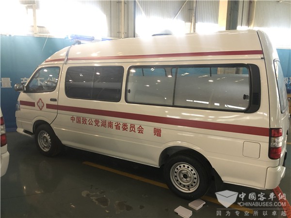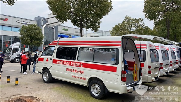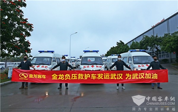 疫情发生后,湖南省红十字会第一时间向金龙客车定制了10辆负压救护车支援各定点医院,其中首5辆已于2020年2月17日交付,捐赠给湘西自治州人民医院、益阳市第四人民医院、邵阳市中心医院、娄底市中心医院、株洲市中心医院,并已投入紧急使用。2月22日下午,湖南省红十字会举行第二批负压车捐赠活动,5辆金龙负压救护车分别转赠给永州市中心医院、怀化市第一人民医院、湘潭市中心医院、张家界市人民医院、省人民医院5家省内疫情防控定点医院,助力“防疫一线”转运力量。