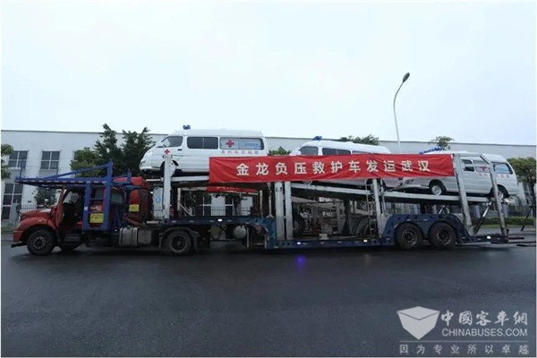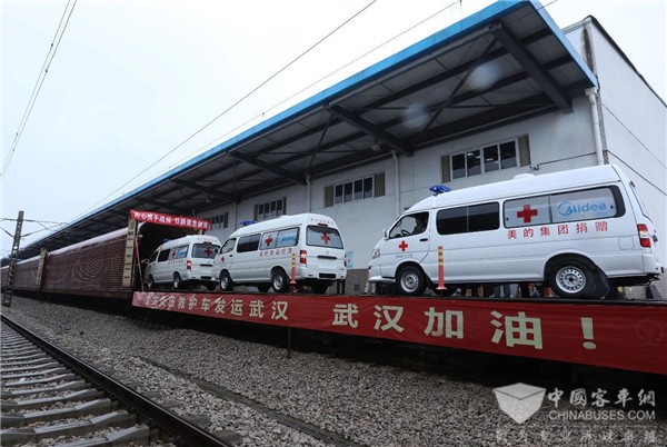 2020年2月14日,金龙客车首批40辆负压救护车搭乘福建省首批救援特货专列驰援武汉。这40辆负压救护车全部为美的集团捐赠,经过近四天的长途跋涉,顺利抵达武汉,目前已陆续交付给湖北省各市县定点收治院。