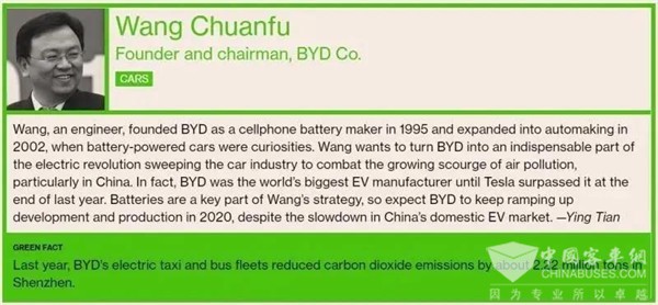 2020全球30位环保先锋榜发布,比亚迪王传福成唯一上榜中国车企领导人