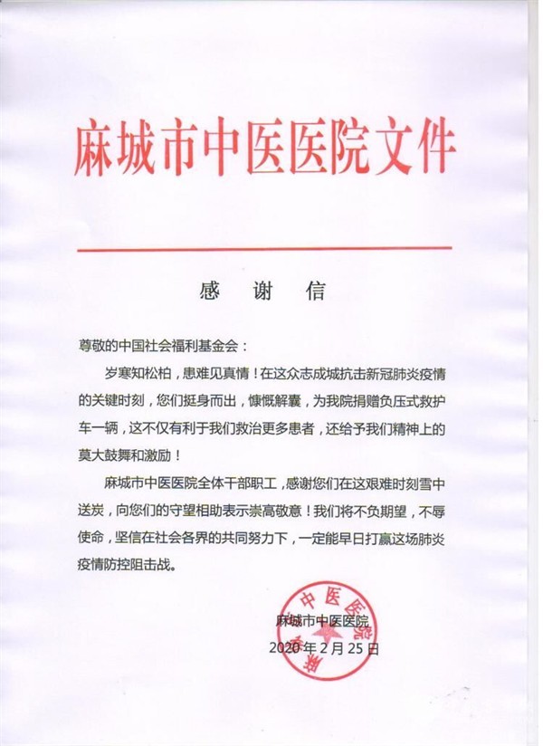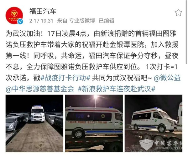对北汽福田集团为了疫区早日用上福田图雅诺负压救护车,