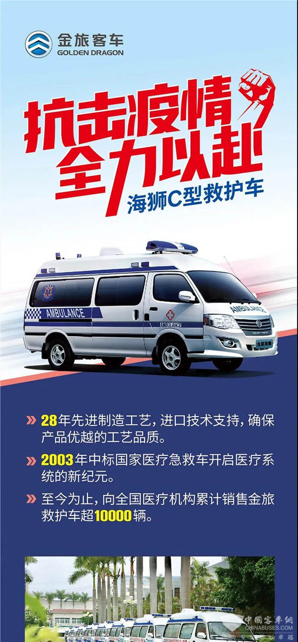 截止今日,金旅已有超180台防疫救护车,奔赴湖北及全国各地,奋战在抗疫一线,安全转运患者,杜绝交叉感染,守护健康大众。2020年2月27日,我们通过直播的方式,向大家介绍了B型防疫救护车,今天,我们将以长图的形式向大家介绍C型防疫救护车。
