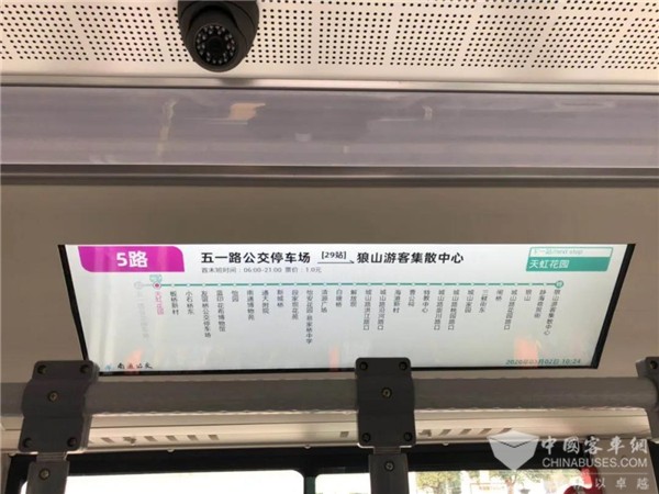 目前,南通市公共交通有限公司总共投放了16辆苏州金龙蔚蓝Azure公交车在5号线路上,疫情期间暂时先投放了4辆,每辆车运行间隔时间是30-40分钟。