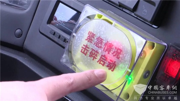 与乘客们舒适的体验感不同,5路车的司机们对于新换的这批车有着不一样的感受,对他们来说,保证乘客的安全就是司机最大的责任。今年39岁的王师傅是5路公交车的驾驶员,有着10年驾龄的他开过很多公交车,这批蔚蓝给他最直接的感受就是“功能很多、很实用”。“像以前,车厢出现情况的话,我们用安全锤要自己跑到后面。现在我们有一键启动破玻,发生特急情况时,来不及开门的话,我们驾驶员就可以一键按下,后面有装置的玻璃自己会爆。”同时,车上还设有六个自动喷淋灭火系统,当车内烟雾浓度达到一定程度,系统就能自动喷出液体灭火。