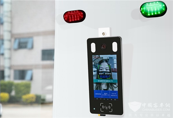 金龙ANMO智能防疫工作站采用高精度工业红外光谱传感器,出厂经过黑体辐射源校准,50cm距离即可采集体温数据,同时还可监测口罩佩戴情况,发现异常即语音警告,并自动拍照上传至服务器。