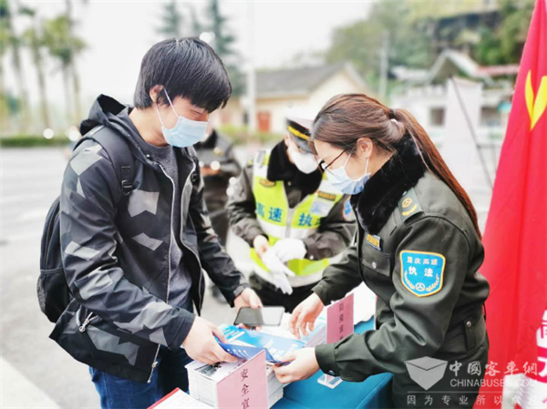 疫情防控不放松,井然有序忙复工。2020年3月13日上午,中国共产党重庆高速集团南方营运分公司委员会、中国共产党郑州宇通客车股份有限公司委员会、中国共产党重庆市交通运输综合行政执法总队第一支队一大队支部委员会联合开展了复产复工疫情防控主题活动。