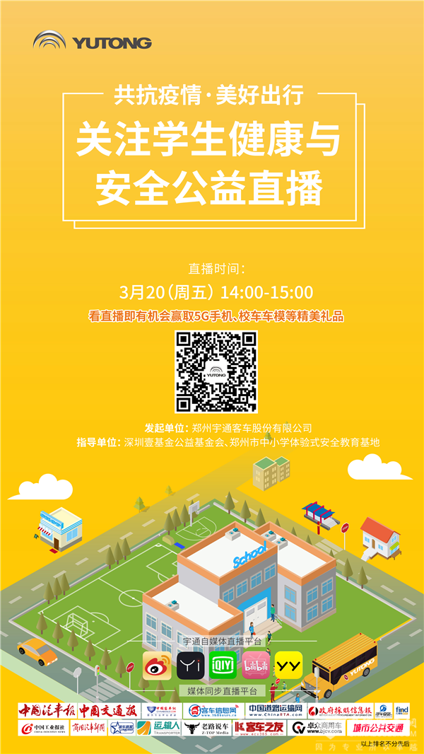 为了解决学生家长、老师关心的难题,保护儿童、青少年健康成长,同时提升社会各界对学生健康成长、安全出行的关注,宇通客车专门发起“共抗疫情 美好出行”关注学生健康与安全公益直播活动。