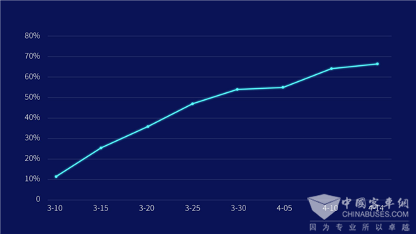 图 | 3月11日-4月14日湖北宇通公交复工率增长图