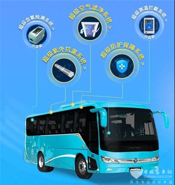 为了给大家提供健康的乘车环境,欧辉旅游客车也做了健康升级,加装了超级防护保障系统、超级空气滤净系统、超级紫外抗菌系统等防护利器,能够实现车内空气实时净化、接触面抑菌消毒和乘客健康状态全面监测,为大家的健康筑起防护屏障。