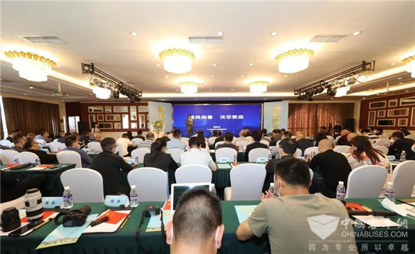 会议现场,都江堰城市公交董事长欧云南,开沃集团董事长黄宏生等相关领导讲话,就大家关心的产业政策、新产品、核心技术、售后服务等相关问题展开介绍和推介。