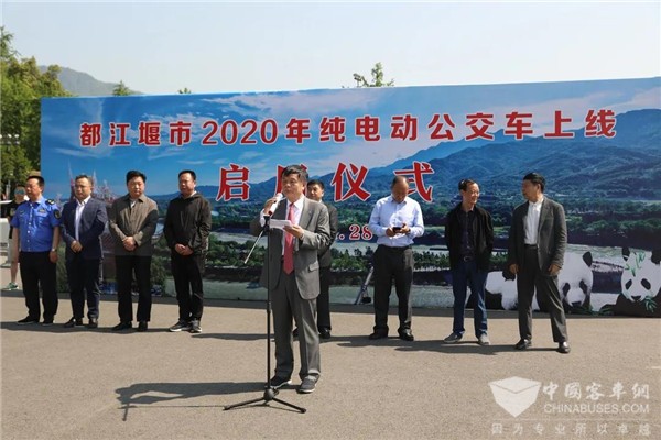 都江堰市交通运输局机关党委书记徐守强,都江堰运输管理所所长陈兵,都江堰公交集团董事长欧云南,开沃集团董事长黄宏生,开沃集团副总裁李江、吴龙八、李国林,南京金龙客车制造有限公司副总经理于崇及川渝大区等多方领导出席活动。