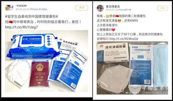 收到“健康包”后,海外留学生们纷纷在微博晒图