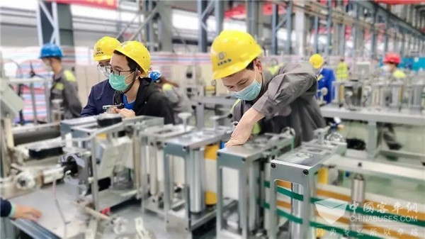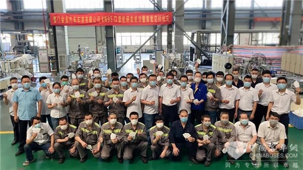 特殊时期,口罩史无前例地成为紧俏商品。“我们攻坚克难,与时间赛跑。在最需要的时候,我们尽全力研发KN95口罩机,在最关键时候顶得住,拿得下!” 金龙车身公司总支书记说。