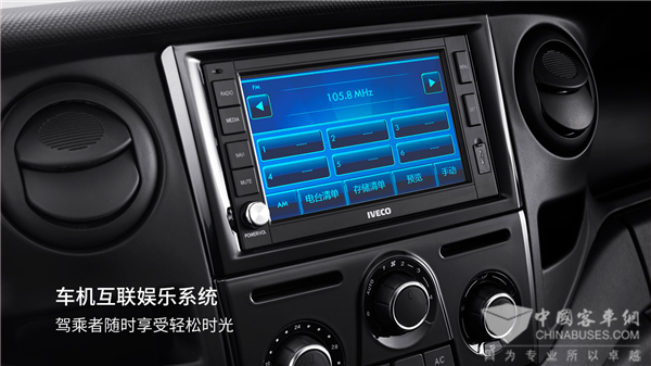 依维柯欧胜2020款的内在精髓之处,就在强大的智能管理上。全新一代依维柯欧胜为用户提供了诸多实在贴心的功能配置。IVECONNECT移动互联娱乐系统,支持手机互联、北斗/GPS双模定位导航、倒车影像等众多功能,将手机与汽车全面融合,通过手机的移动互联网优势,将汽车也融入到实时导航、在线音乐、在线影像等移动互联网络中,满足驾乘者提供随心所欲的影音娱乐需求。
