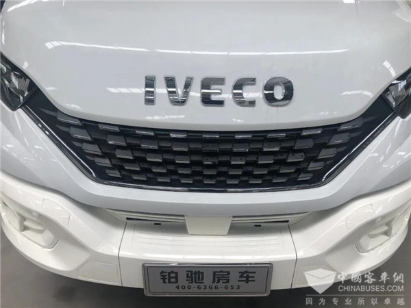 国六进口帕亚尼底盘换上了全新LED大灯组、白色定制前保险杠、全新设计的双V型的前脸,蜂窝状的格栅搭配犀利的线条,更具时尚感。整体风格继承了铂驰房车系列的设计语言,细节点缀更加具科技感和设计感。