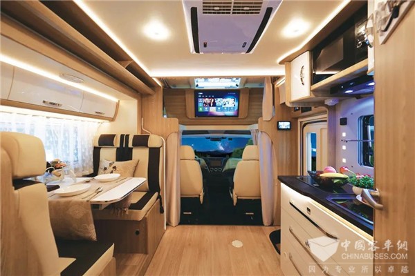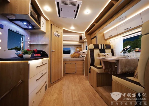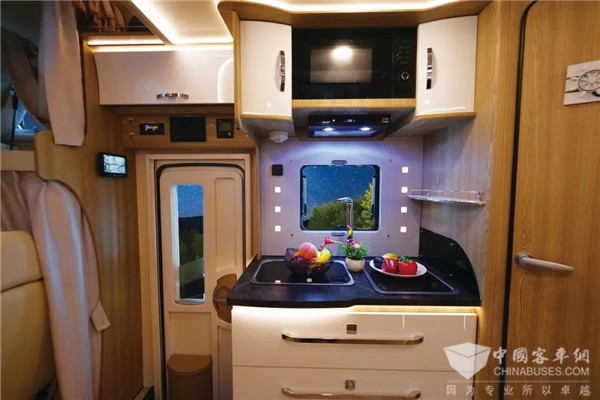 这款进口依维柯New Daily 还配备有侧风车身稳定系统、陡坡缓降控制系统、牵引力控制系统、自动紧急制动和胎压监测系统、自动LED大灯等功能,保证车辆在行驶过程中的安全性。全新特鲁玛燃气系统保证了房车使用的安全和便利性。