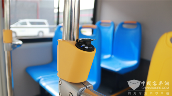 此外,车内科学分布8个USB充电口,解决市民出行紧急充电问题;车外反光镜后搭载LED显示屏,方便乘客获取进站车辆信息;安装一级踏板,方便老人儿童上下车……