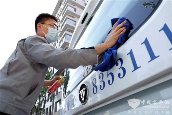 5月11日傍晚,北京沙尘入境,入夜后降雨来袭,让露天停放的车辆全都披上了一层“泥衣”。次日上午,北汽出租汽车集团某场站内,欧辉服务工程师提前赶到,搬来梯子、手拿抹布,与司机一同清洗欧辉纯电动客车。当天下午,福田欧辉两会服务保障突击队的18名队员将为参与两会接驳服务的欧辉客车,完成交车前的最后一次全面检查。