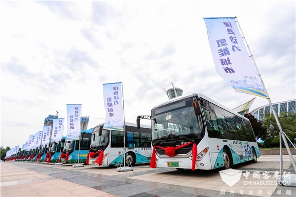 2020年6月1日,批量中通氢燃料电池公交车正式交付潍坊,助力潍坊氢能示范城市的创建。
