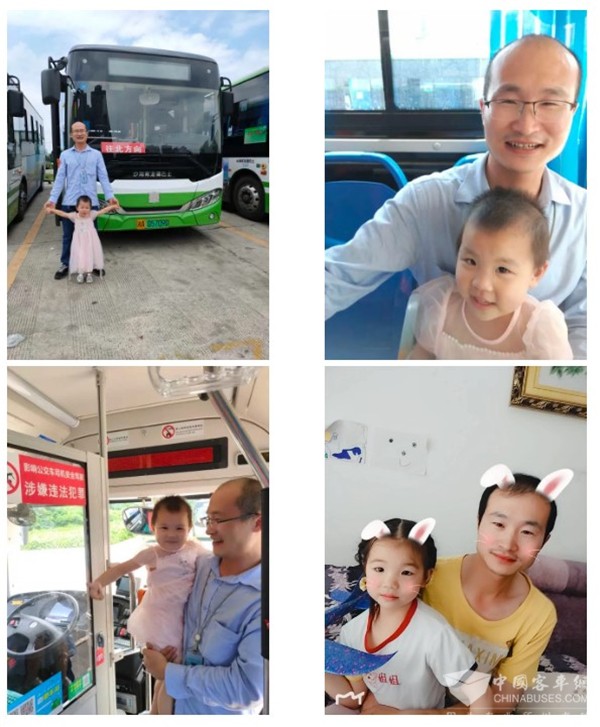 杨文广,驾驶中车电动新能源公交车已9年有余。这辆公交车也“见证”了他从单身到结婚生子的“华丽转身”。今年六一儿童节,他带着3岁的小女儿体验自己驾驶的公交车,小宝贝特别开心,高声的笑着、叫着、拍着手、跺着脚。