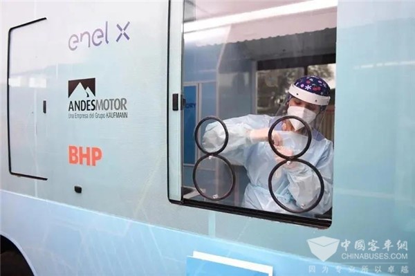 2020年5月28日,智利第一辆新冠病毒移动“采样+检测”车,福田欧辉纯电动“移动实验室”在智利圣地亚哥正式上线运营。车辆将率先用于圣地亚哥拉平塔纳、上普恩特等防护薄弱的城镇区域,用于当地新冠病毒病毒检测。