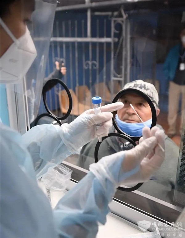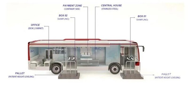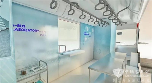 “移动实验室”包含4名卫生工作人员移动座椅区、限制接触医疗舱、办公区、2个样本采集箱和存储区、消毒区、无线网络等,同时配备一次性手套、手术面罩、防护服和保护眼镜等防护设备,可在实现每日40-60采样检测基础上,最大化保证医护人员免受感染。