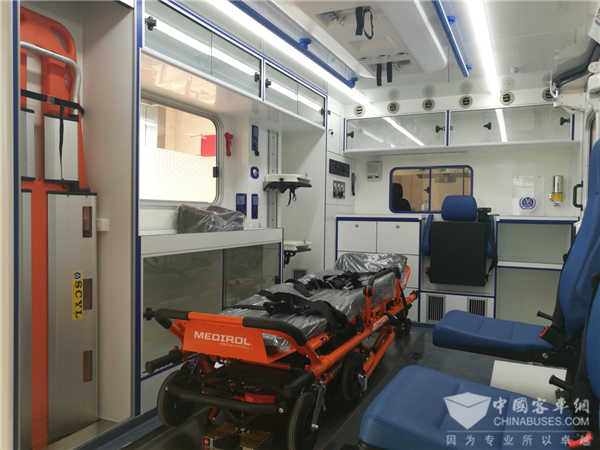 此外,未来救护车将朝着“上车即入院”的方向发展,因此救护车需要配备的设备也越发大型化、复杂化、全面化。依维柯欧胜方舱救护车采用前置后驱、非承载式车身以及驾运兼顾悬架系统。前双横臂横置板簧独立悬架保证车辆舒适性,后钢板弹簧非独立式悬架保证车辆的运载能力。正是凭借超强的底盘承载力,依维柯欧胜方舱救护车可支持大体量的医疗设备拓展,堪称“小型移动医院”。