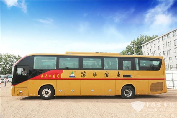 2020年6月16日,10辆喷涂着“共产党员号”的福田欧辉BJ6122顺利交付沈阳安泰旅游有限公司(以下简称沈阳安泰)。此次交付的所有车辆全部定制涂装,是沈阳安泰对”离乡离土不离党,扛着党旗闯市场”党建文化的深入贯彻,更是在“七一”建党节到来之际,为建党99周年的献礼。