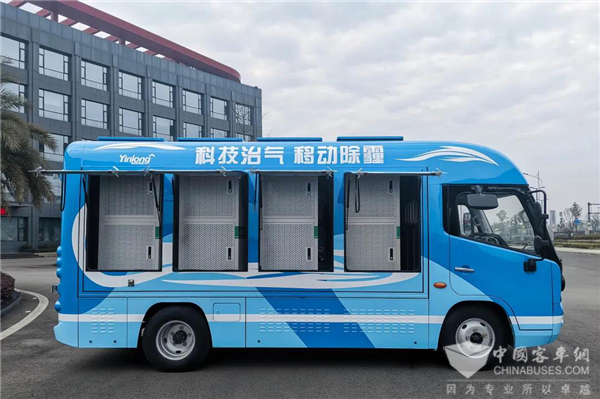 国务院《打赢蓝天保卫战三年行动计划》中指出,要加快调整能源结构,构建清洁低碳高效能源体系;要积极调整运输结构,发展绿色交通体系;要明确落实各方责任,动员全社会广泛参与等。为此,在建设清洁低碳高效能源体系、打造绿色出行方案方面,银隆勇担社会责任,凭借科技创新实力,打造了行业内首辆新能源空气净化除霾专用车。