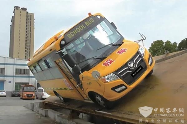 福田欧辉防撞吸能的长头卡车造型+保险杠内加装防撞钢梁设计,能够有效提高碰撞发生时车内人员的安全系数,减少风阻;其前保险杠、前围骨架上横梁可拆卸结构,提升了发动机维修、拆装的方便性;整车更是通过专业校车侧翻试验及顶部静压试验,实车空载42°侧倾,稳定角远优于国家强制标准要求(≥35°)。此外,更是装配无盲区后视镜、专业警示标志牌等多种设备,真正做到让学生无后顾之忧。
