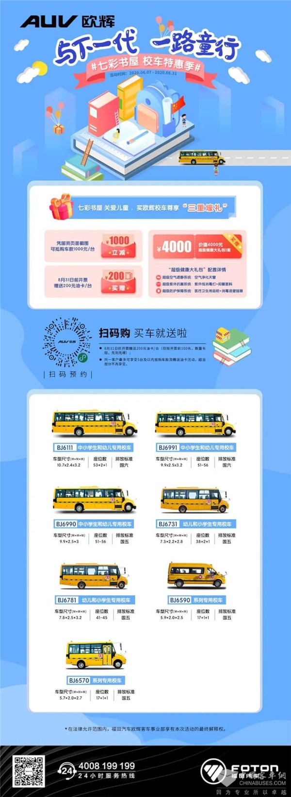 儿童,是祖国的未来和希望。保障儿童的安全和健康,不仅仅是家长老师的责任,更是全社会都应关注的大事。一直以来,福田欧辉坚持深耕,不断提升校车的品质和安全性,革新突破,持续引领校车市场的品质升级,得到了家长、老师的一致认可。未来,福田欧辉将坚持不懈的践行社会责任,护航莘莘学子,共筑美好明天。