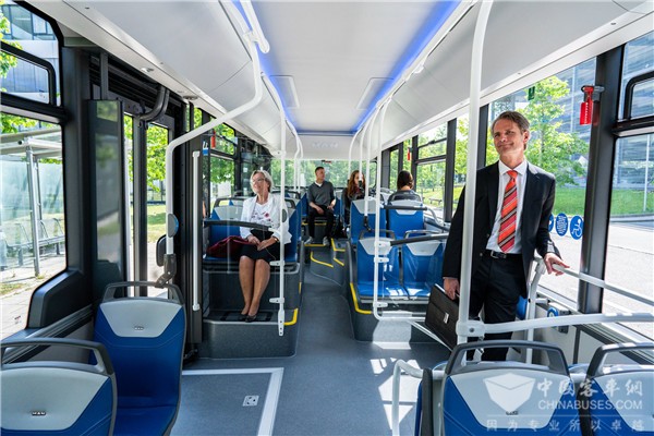 Lion's City E另一个显著的特征就是取消了发动机舱,优化了尾部座椅区域的设计,光线更充足。行云流水般的线条设计赋予了这台巴士独特的造型,同时,通过大量新技术和新材料的使用,整车大幅减重。这些令评审们大为折服。他们表示:“整个车身采用拼接设计。颜色、装饰及照明概念也彰显了其背后的人性化设计理念。驾驶舱不仅符合人体工程学,在功能性方面也达到了很高的水准。”