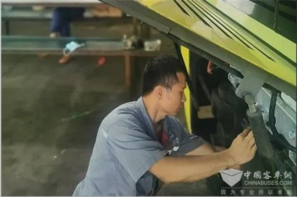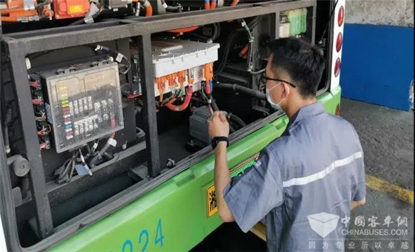 深圳,每天客运量极大,车辆运营繁忙。为了确保高温天气下深圳车辆的正常运行,余江每天都要对上线车辆进行安全检查,给车辆“降温解暑”。
