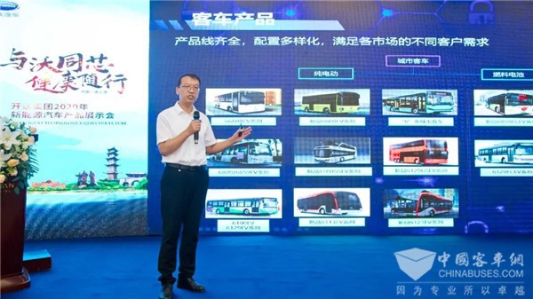活动现场,开沃汽车集团董事长黄宏生,开沃汽车集团副总裁、大客事业部常务副总经理李江,开沃汽车集团副总裁、南京创源天地动力科技有限公司总经理江民等领导讲话,在公交、专用车、乘用车、核心零部件等多个细节领域带来产品及发展理念分享。