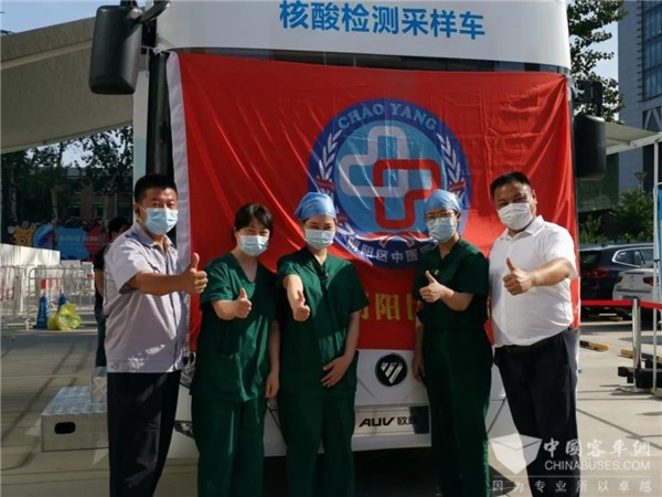 欧辉抗疫“战车”开入朝阳为居民提供”应检尽检,愿检尽检“服务