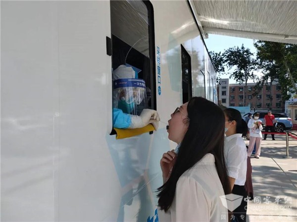 值得称道的是,福田欧辉全国首创移动“核酸检测采样车”可根据检测需要随时更换检测点,方便快捷的为北京市民提供核酸检测服务,实现了受检人员与医护人员的分离,保证检测工作的快速落地。