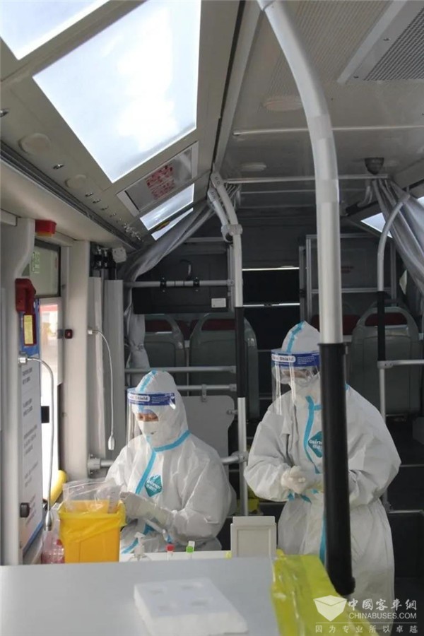 首次体验福田欧辉移动“核酸检测采样车”的医护工作人员