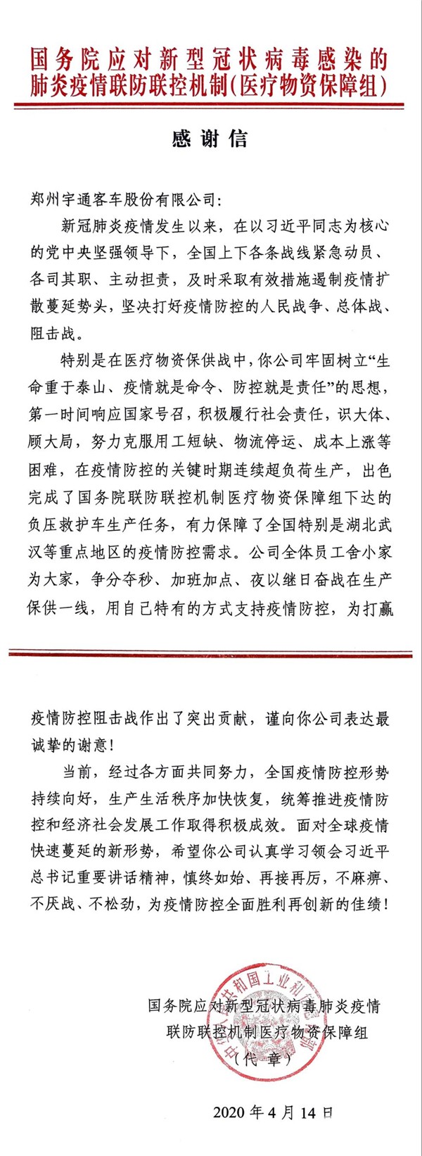 这不仅是对宇通抗击疫情的肯定