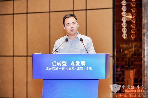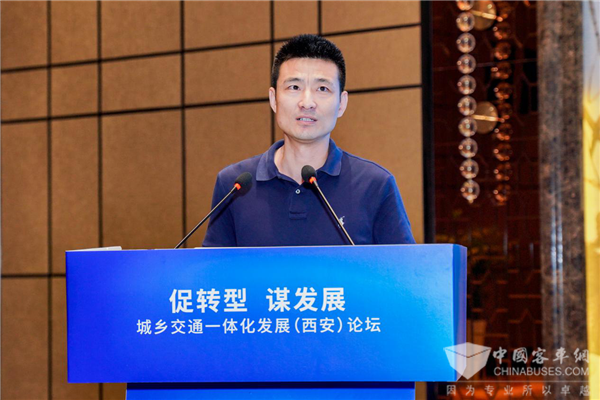 随后,宝鸡市宝运汽车运输(集团)有限公司(简称为“宝运集团”)董事长兼总经理刘玉明,为大家分享了他们深耕城乡交通的经历与经验。刘玉明介绍:“宝运集团在公交化改造时,对全国优秀的客车制造厂进行性、价、舒适感等多项比对,最终把宇通生产的公交车作为我们的第一选择项。在当地政府和交通管理部门的鼎力支持下,宝运集团先后赶赴多地进行学习和考实,把学到的宝贵经验融合到自身实际之中,形成了‘以县区为中心,以乡镇为节点,以行政村为终端’的相互衔接、布局合理、方便快捷的城乡公交客运一体化网络。”