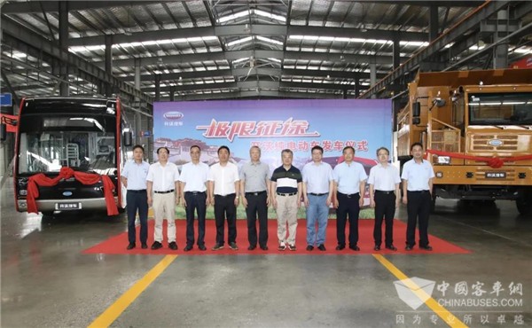 2020年7月4日,开沃集团总部溧水基地,交付拉萨公交试运行的开沃12米纯电动公交车、开沃纯电动矿卡和天美纯电动SUV,以及开沃旗下多款纯电动汽车集结亮相“极限征途——开沃纯电动车发车仪式”现场。