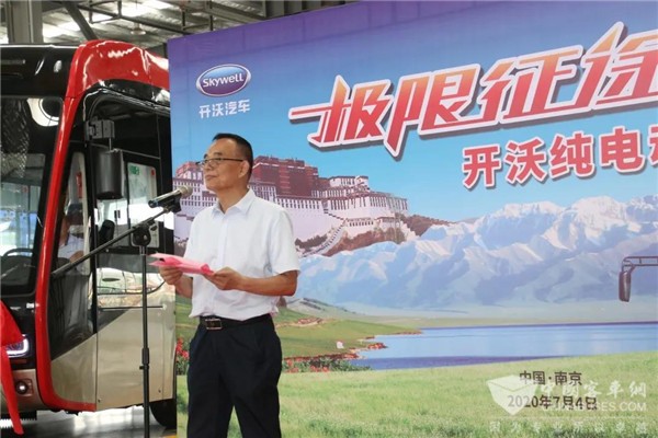 拉萨市张文浩副市长、江苏省工信厅周毅彪副厅长、南京市政府包洪新副秘书长、开沃集团副董事长丁星胜等领导共同出席,见证开沃纯电动车发车自南京奔赴西藏拉萨的极限征途。这段征途横贯我国大陆东西,穿越江苏、安徽、河南、陕西、甘肃、宁夏、青海、西藏等省份及自治区,堪称行业内“史诗级交付”。