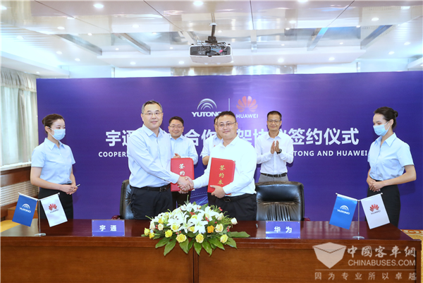 2020年7月23日,宇通集团与华为签约合作,双方将在云计算、大数据、车联网、自动驾驶、新能源、智能交通、智慧园区、企业管理、智能工厂和国际化业务拓展等领域展开深入合作,共谋发展。