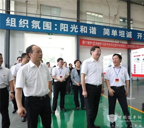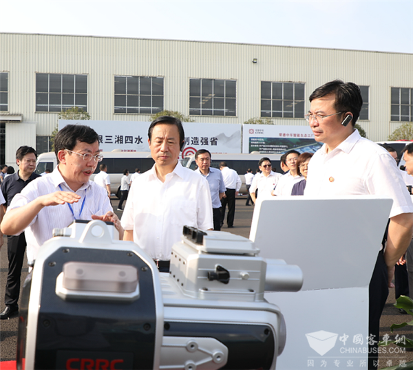 2020年7月24日下午,参加湖南省产业项目建设推进现场观摩会的湖南省委书记杜家毫、省长许达哲莅临常德中车新能源汽车有限公司,视察即将竣工投产的“中车新能源客车超级工厂”。