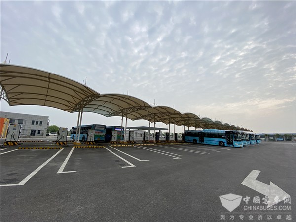 宿州高新区公交枢纽站内的充电站,可容纳100多辆公交车同时充电