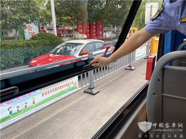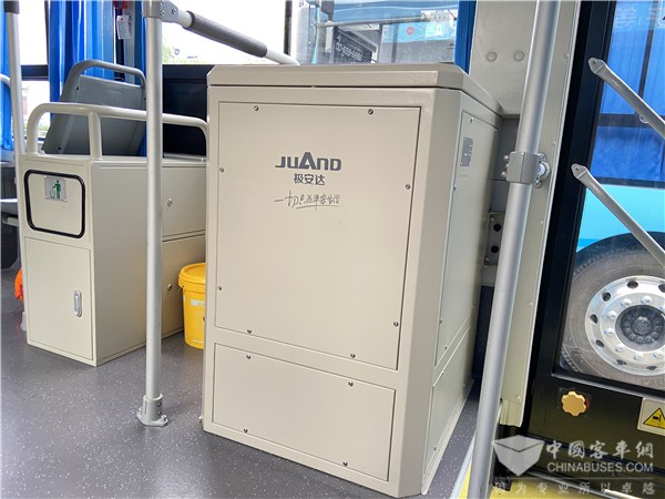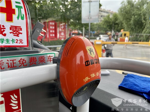 在宿州公交的招标要求下,这批宇通驾驶室内两侧各装有一个12.3 寸电子后视镜,可实时显示车外情况,利于晚间或雨天安全行车;车上配套了灭火箱、及车顶上布置了一排的淋水器;安装了检测易燃易爆物品的装置,防止易燃易爆物品携带上车;还设计了独特的手动快捷启动应急窗,可迅速完成车内人员的撤离。