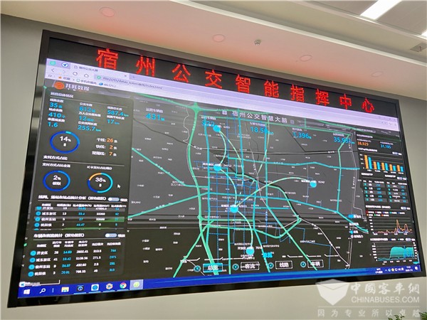 在公交智能调度及监控管理系统上,宿州公交更是走在全国前列,不低于一二线公交的大数据管理水平。记者注意到,在宿州公交智能指挥中心的巨型显示屏上,可以对运营中的612辆公交车进行全部数据的实时收集,可直观地看到车辆的运行行驶路线、驾驶员姓名、车速、位置和乘车人数等详细信息,可对客流变化及路线拥堵等数据做出实时分析,通过大数据分析可智能调度发车频次及排班;同时,利用车上安装的易燃易爆气体检测、视频监控等设备,可迅速发现异常,根据应急预案发出指令进行紧急处理。