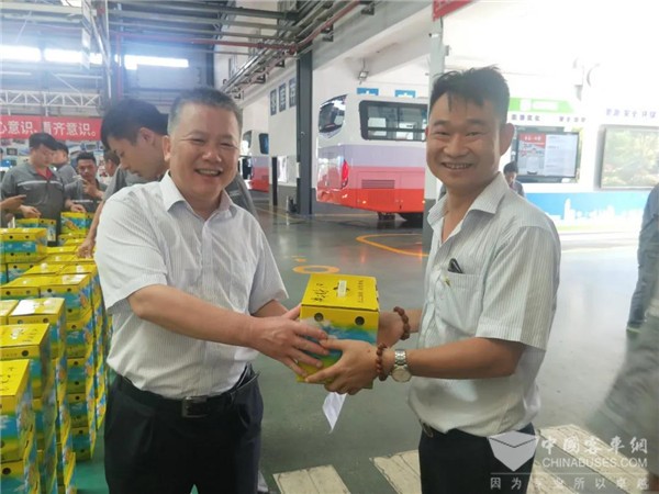 中车电动党委副书记、纪委书记、工会主席李群波叮嘱大家,在夏季高温作业时务必注意防暑降温,确保身体健康和工作安全。送清凉期间,他向广大一线员工介绍即将建成投产的“中车新能源客车超级工厂”,他表示“超级工厂”不仅拥有世界级智能制造技术,同时高标准为员工打造温馨舒适的生活环境,尤其在员工就餐、住宿、出行、教育、购物、医疗等与生活息息相关的领域加大投资。他号召广大一线员工要继承和弘扬“长征精神”,坚定理想信念,坚韧不拔,担当作为,以舍我其谁的主人翁心态为中车电动冲刺年度经营目标贡献力量。
