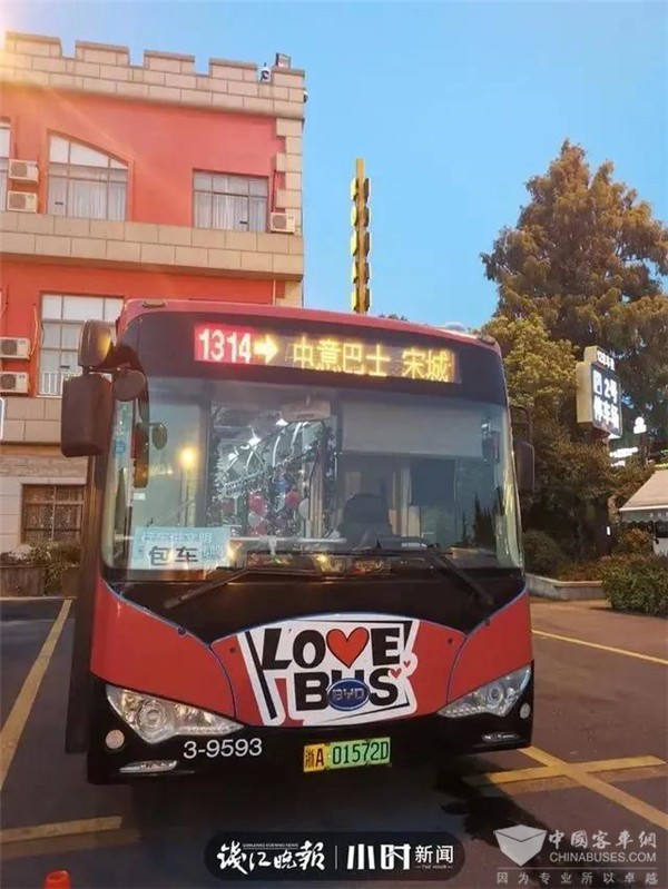 在西湖边上,有这么条“爱情专列”公交线路,象征着爱情——1314路中意巴士,2020年 8月17日,一辆1314路比亚迪公交车成了真正的“love bus”,在这个燥热的夏天撒出了一把齁甜的糖。