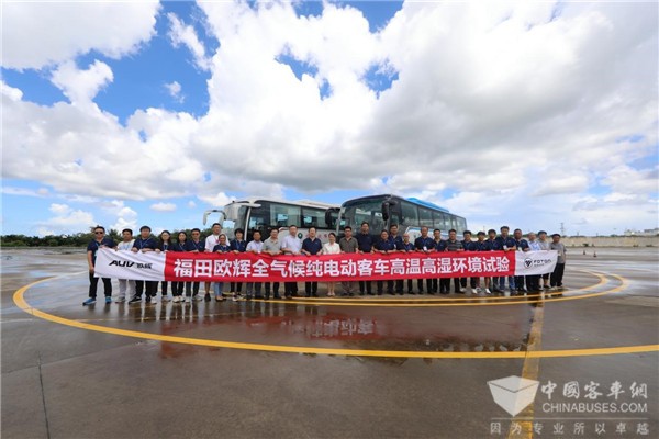 2020年8月22日,福田欧辉全气候高性能客车高温、高湿试验活动于海南省琼海市海南汽车试验场举行。至此,福田欧辉纯电动客车已先后通过内蒙古海拉尔-35℃极寒环境及海南高温、高湿环境测试,成为国内首个单一车型通过全气候品质验证的纯电动客车品牌。