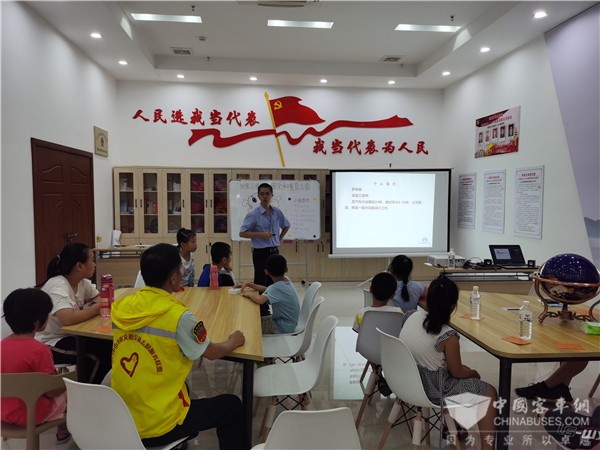 金旅海外销售公司应用工程师罗森模,结合自身24年从事汽车行业的经验,从人类“出行”的古今中外发展史切入,为参加夏令营的孩子们讲述了在乘车过程中和在路上行走时,分别需要注意的事项。