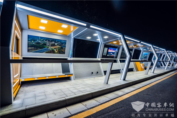 智能驾驶公交线路上还建设了34个“太空舱”造型智慧站台,造型时尚、极具科技感。通过高清定位和大数据技术实现公交时刻表运行,并提供精准到秒级的车辆到站提醒服务。